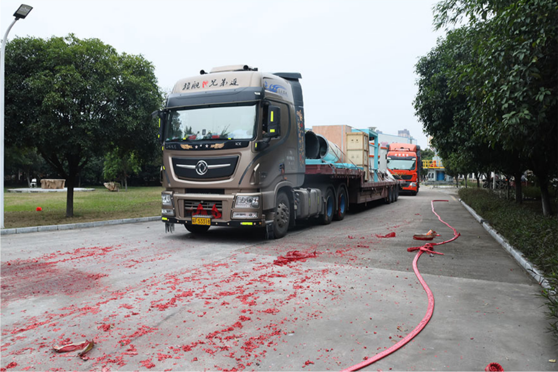 缓缓驶出厂区,奔赴客户现场。车轮滚滚,炮声长鸣,为新一年的征程开了个好头,