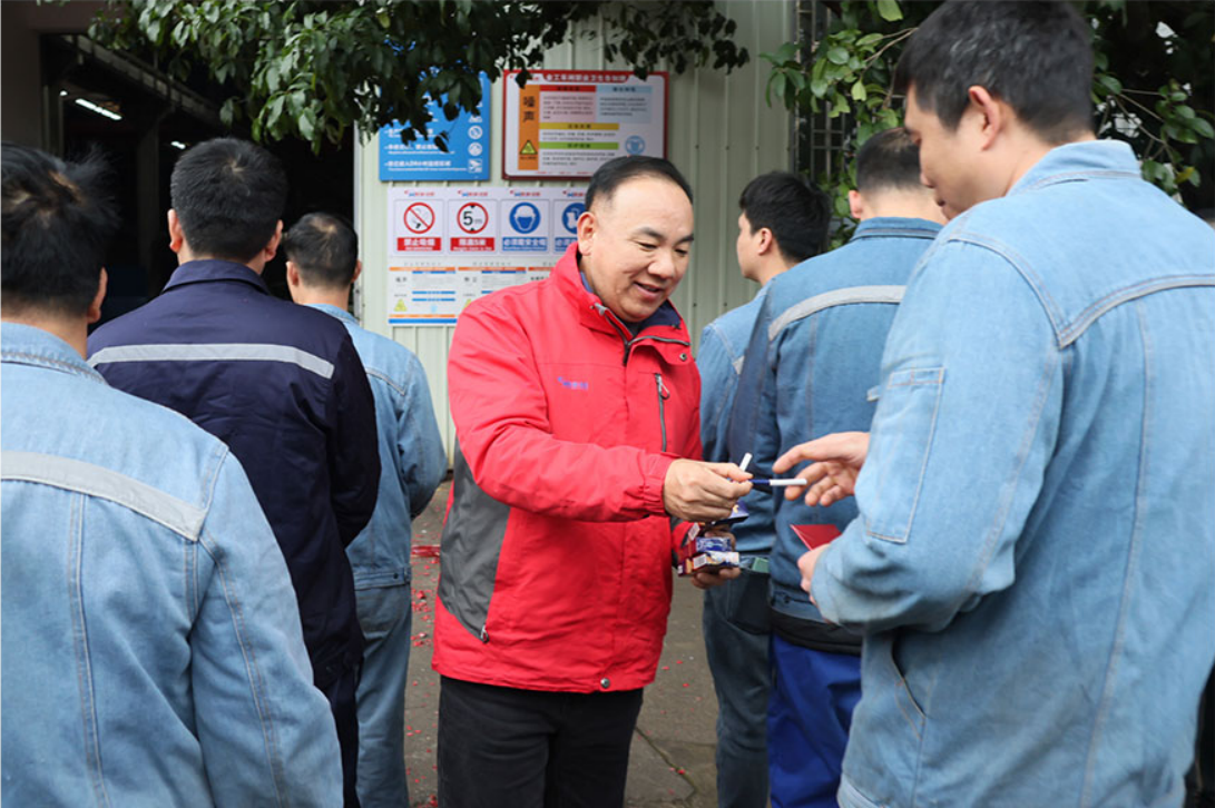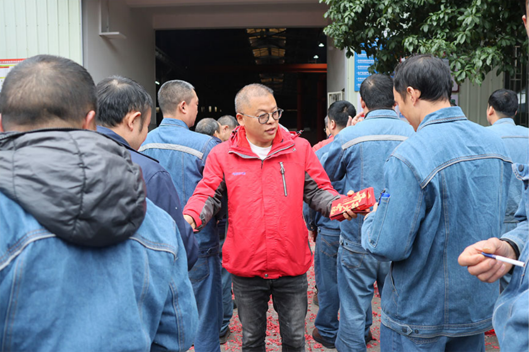 领导致辞结束后,公司高层为全体员工派发新年红包。红包虽小,情意深重,不仅承载着公司对员工辛勤付出的感谢,